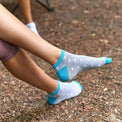 Additionally, our cotton low-cut socks for women feature a striped design to make them ideal for matching with your sportswear. The package offers white, gray and black colors with horizontal stripes in black, gray or blue. Women’s striped socks on GoWith are available in packs of four socks so that you can have always spare socks to wear every day.