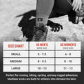 You can settle for any old socks if you’re carefully walking less than a mile on cushioned flat land in perfect weather; but that’s not why you’re here. Is it? You know that MudGear never builds socks that are only perfect in perfect conditions. MudGear Hiking / Trekking Socks are designed to provide premium arch and ankle support for off-road (maybe off-trail) terrain over regularly ascending / descending elevation. Our moisture-wicking blend of premium poly-spandex yarns is second to none. These socks don’t retain water, and they drain quickly after trekking through puddles and creek beds. The end result is sheer comfort that makes getting there MORE than “half the fun.”